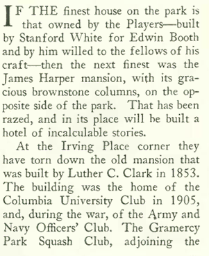 The editors of “Talk of the Town” continued their sad refrain on the city’s changing landscape, the wrecking ball this visiting Gramercy Park: