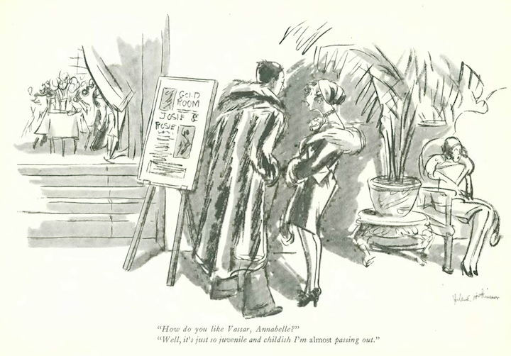 And to close, this cartoon by Helen Hokinson, which in the original magazine filled all of page 14 and therefore had to be printed sideways: