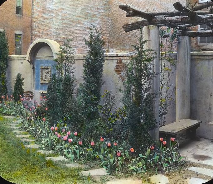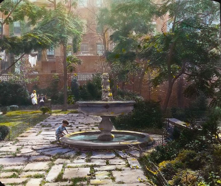 No doubt the writer saw something akin to what we can see in Frances Benjamin Johnston’s rare color photographs of backyard gardens in the early 1920s Manhattan (all photos courtesy Library of Congress):