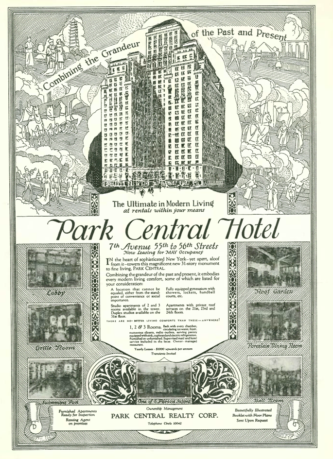 Advertisements in this issue included this announcement for the opening of the Park Central Hotel, still a grand landmark on 7th Avenue…