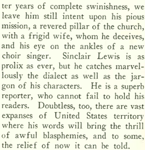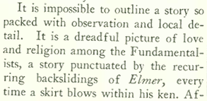 Boyd also reviewed Sinclair Lewis’sElmer Gantry, a controversial novel that exposed the hypocrisy of some 1920s evangelical preachers: