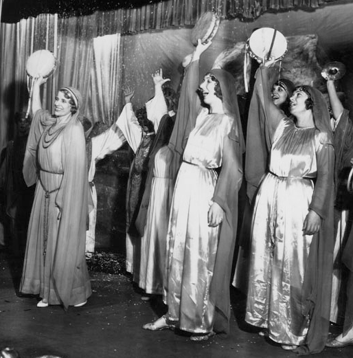 Aimee Semple McPherson (left) leading a service at her Angelus Temple in Los Angeles in the 1920s. (Los Angeles Public Library Photo Collection)