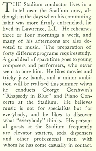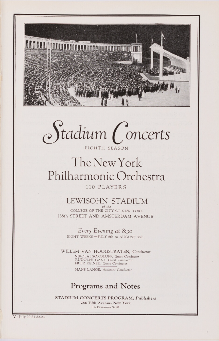 From 1918 to 1966, thousands of New Yorkers attended summer open-air concerts at Lewisohn Stadium, an amphitheater and athletic facility on the campus of the City College of New York. For many years Willem Van Hoogstraten conducted the nightly concerts, including the summer of 1927 when George Gershwin played his Rhapsody in Blue to adoring crowds.