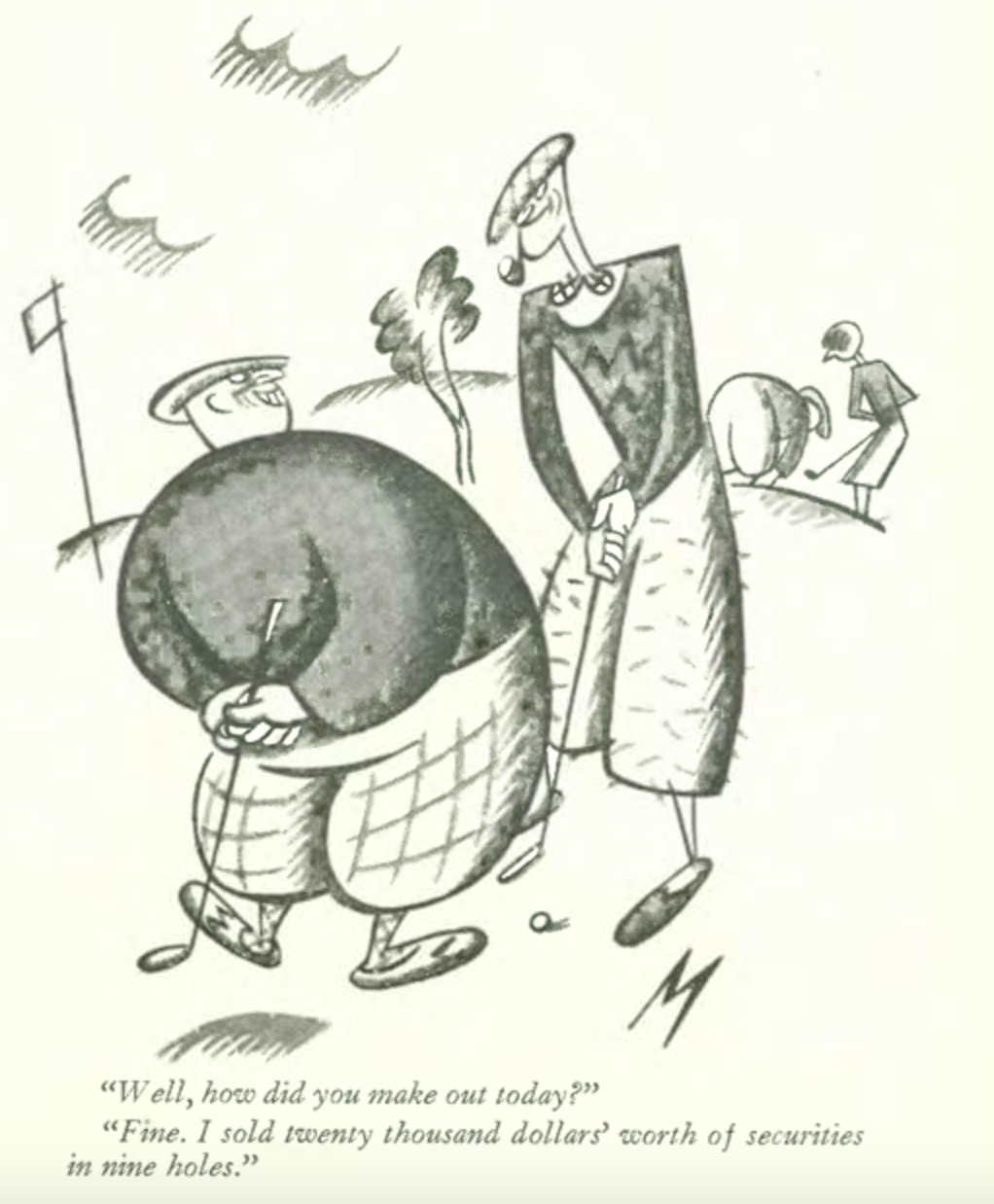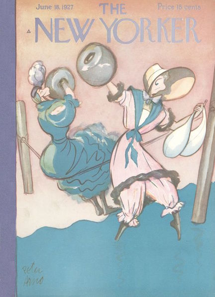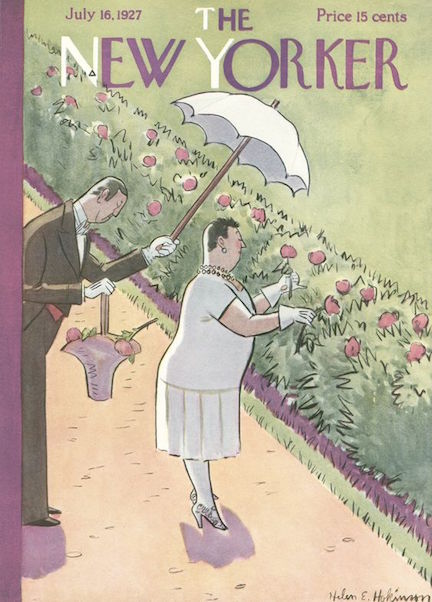 Summer themes continued with the July 16 issue, which featured a cover by Helen Hokinson depicting one of her favorite subjects–the plump society woman: