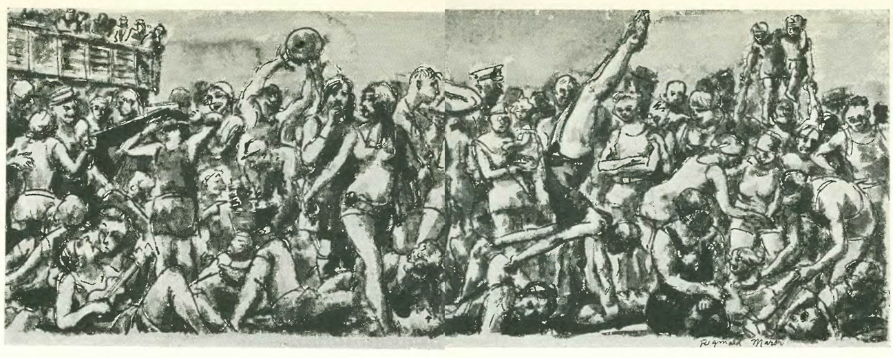 And finally, another illustration in the “Talk of the Town” of summer in the city, this a teeming Coney Island beach courtesy of Reginald Marsh…