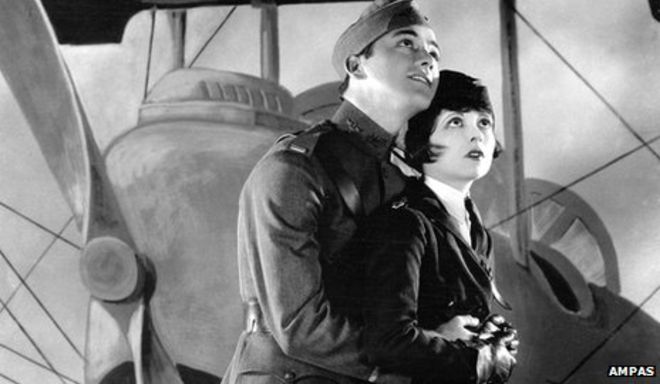 LOFTY AMBITIONS…Charles “Buddy” Rogers and Clara Bow in Wings, 1927. (BBC)