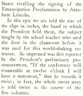 …while humorist Robert Benchley (writing under the pseudonym “Guy Fawkes”) in his “The Press in Review” column continued TheNew Yorker’s stinging attack on the media for its continued attempts to sensationalize events or impart personality traits on colorless newsmakers: