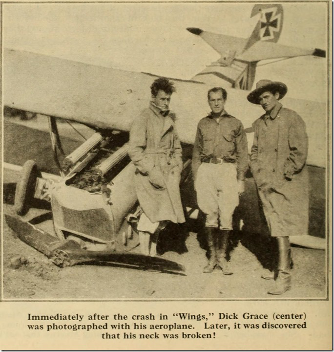 NO CGI HERE…Director William Wellman, during production of Wings, 1927. (Paramount Pictures via New York Times)INSURANCE RISK…Stunt pilot Dick Grace specialized in crashing planes for films, and was one of the few stunt pilots who died of old age. (ladailymirror)