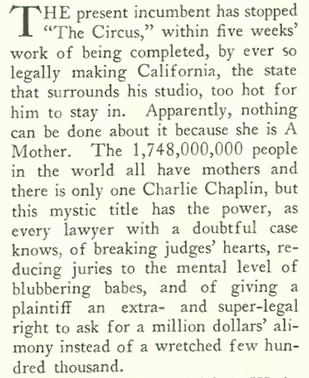 TheNew Yorker’s Ralph Barton, who contributed countless illustrations for the magazine (and was a close friend of Chaplin’s), wrote about Chaplin’s latest travails in a column titled “Picking on Charlie Chaplin.”