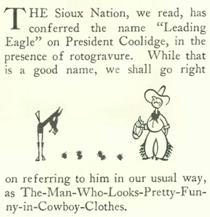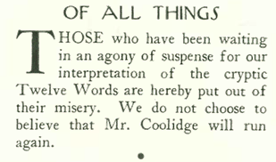 On to July 30, 1927 issue, in which The New Yorker once again takes a poke at our 30th President…