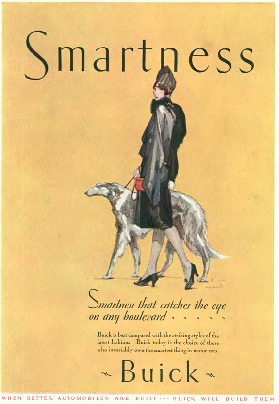 The Buick ad is somewhat revolutionary for an early automobile ad in that it doesn’t actually show the product advertised.