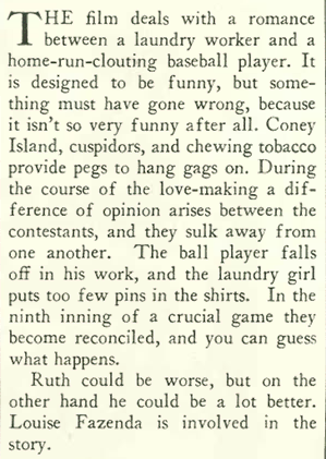 But the magazine still made no mention of the incredible season that was shaping up for the legendary 1927 New York Yankees, or the feats of its feared “Murderer’s Row” lineup. Although widely considered to be the best baseball team in the history of major league baseball, The New Yorker up to this point had given more ink to the game of ping pong. But we’ll take what we can get, namely Babe Ruth’s acting performance in Babe Comes Home…