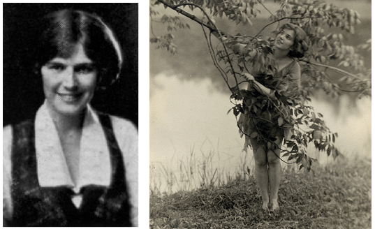 BEFORE IT ALL BEGAN…Left, Lois Long’s photo in Vassar’s yearbook, The Vassarion. At right, during her senior spring, Lois posed for a photo by Sunset Lake. Long studied English and French, graduating in1922 with an English major. (vcencyclopedia.vassar.edu)