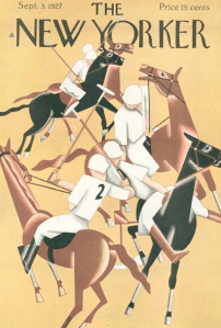 Safely back in the environs of the big city, The New Yorker continued to take stock of summer sports such as tennis, polo, and the yacht races at Larchmont (but still no mention of the legendary ’27 Yankees). This illustration of the races (unsigned, but I guess it is Reginald Marsh) graced a double-spread below “The Talk of the Town”…