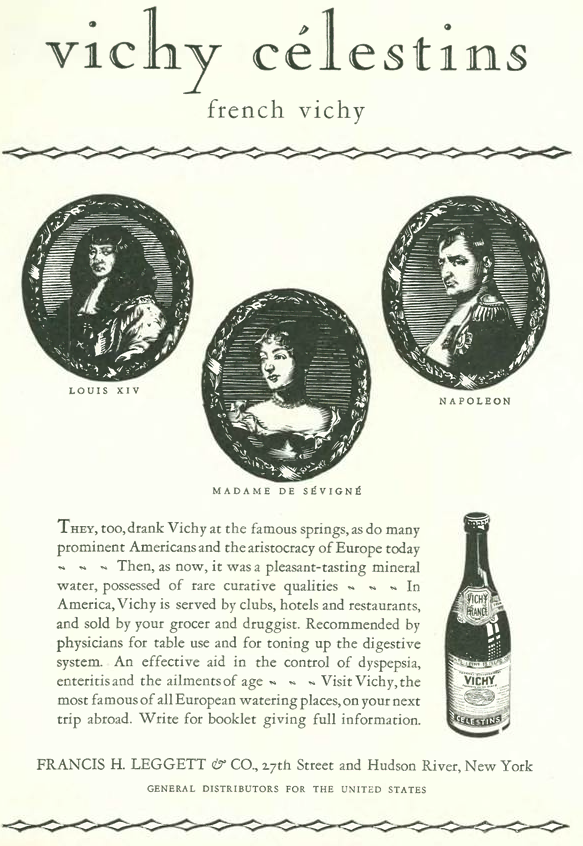 And now, an advertisement from the July 23 issue urging readers to buy the 1920s equivalent of “Smart Water” endorsed by the Sun King himself…