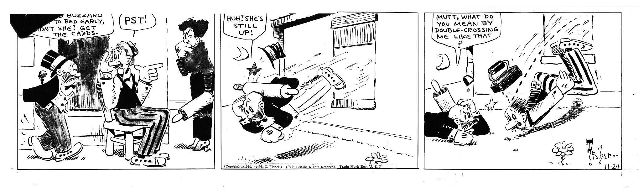 Fisher employed a number of assistants on the strip, including George Herriman (Krazy Kat) and a high-school boy named Maurice Sendak (Where the Wild Things Are). When Fisher appeared to lose interest in the strip in the 1930s, assistant Al Smith took over and drew the strip for nearly fifty years (but Smith didn’t sign his own name on the strip until after Fisher’s death in 1954).