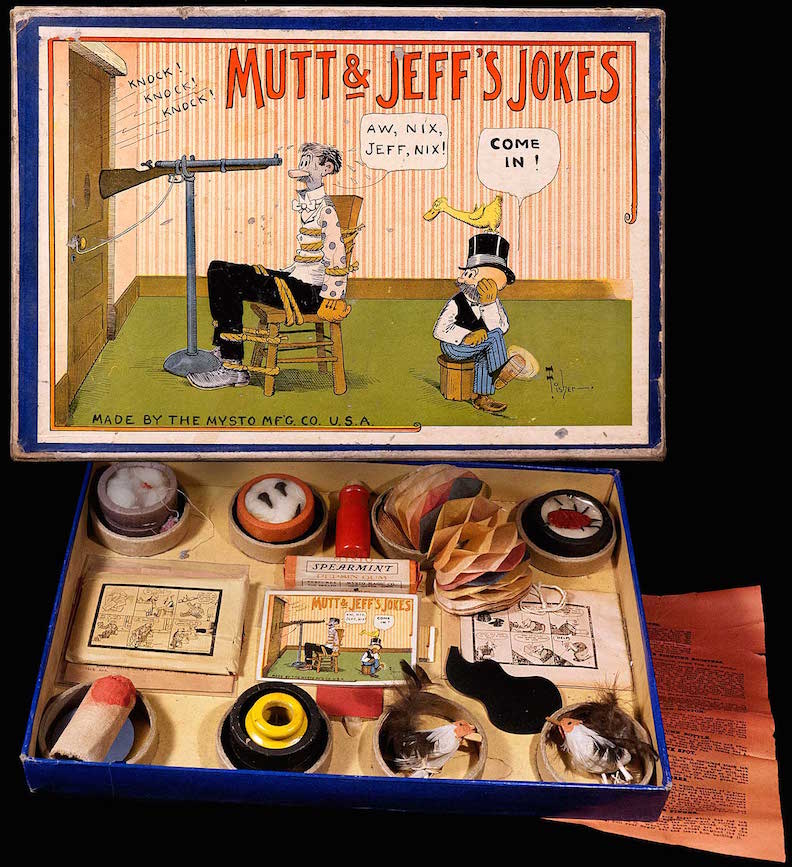 The duo were also featured in more than 300 animated “half-reelers” produced between 1913 and 1926, including Mutt and Jeff: On Strike from 1920. The short film (which can be viewed here) even includes rare footage of Bud Fisher himself, since the story–sort of a film within a film–involves the penniless Mutt and Jeff going on strike after they see a movie featuring Fisher’s lavish home.