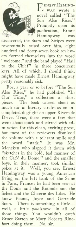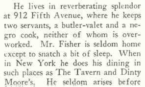 The editors of the Nov. 26, 1927 issue of The New Yorker thought Fisher interesting enough to feature in a lengthy “Profile,” written by Kelly Coombs. A brief excerpt: