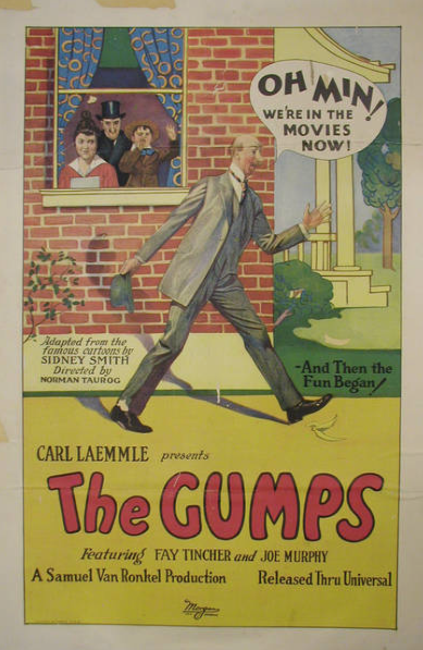 The Gumps were also featured in nearly 50 animated shorts, and between 1923 and 1928 Universal produced dozens of two-reel comedies starring Joe Murphy (one of the original Keystone Cops) as Andy Gump, Fay Tincher as Min and Jack Morgan as Chester (two-reelers were usually comedies, about 20 minutes in length). The director of these short films, Norman Taurog, would go on to become the youngest director to win an Academy Award (Skippy 1931). He would also direct such films as Boy’s Town (1938) and nine Elvis Presley movies from 1960 to 1968.