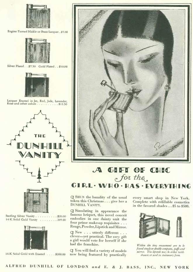 As for ads in the Dec. 17 issue, we get this one from Dunhill, maker of fine English cigarettes and accessories: a woman’s compact that resembles a lighter…