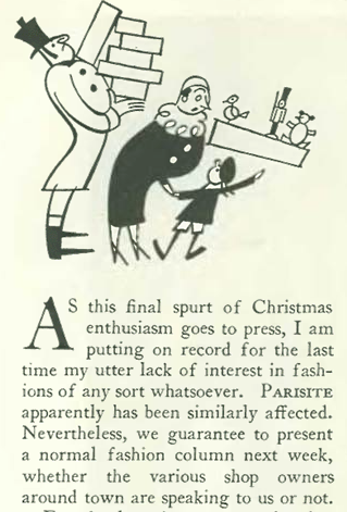 On to the Dec. 17 issue, in which Lois Long also shared with readers her weariness of Christmas shopping in her column, “On and Off the Avenue.”