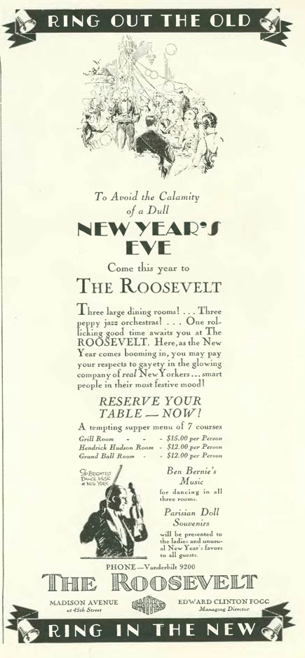 This advertisement in the Dec. 24 issue invited readers to celebrate the New Year at The Roosevelt Hotel…