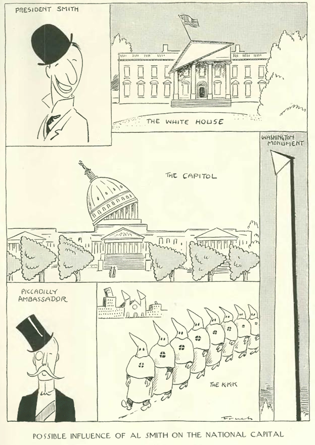 When New York Governor Al Smith announced his candidacy for U.S. President, New Yorker cartoonist Al Frueh had some fun with the governor’s habit of wearing his ever-present bowler hat at a tilt: