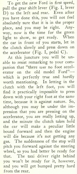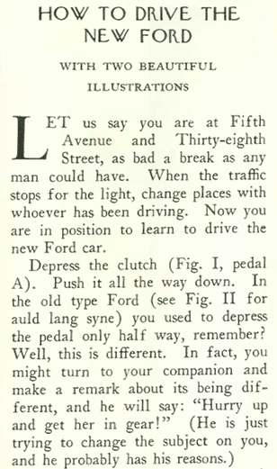 In the same issue (Jan. 21, 1928) E.B. White told readers how to drive the new Model A—in his roundabout way. Some excerpts: