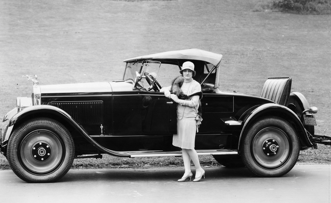 THOROUGHLY MODERN MARJORIE…New York beauty specialist Marjorie Dork, with her Packard, in New York’s Central Park, 1927. Original photo by John Adams Davis, New York. (Detroit Public Library)
