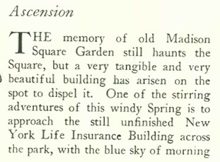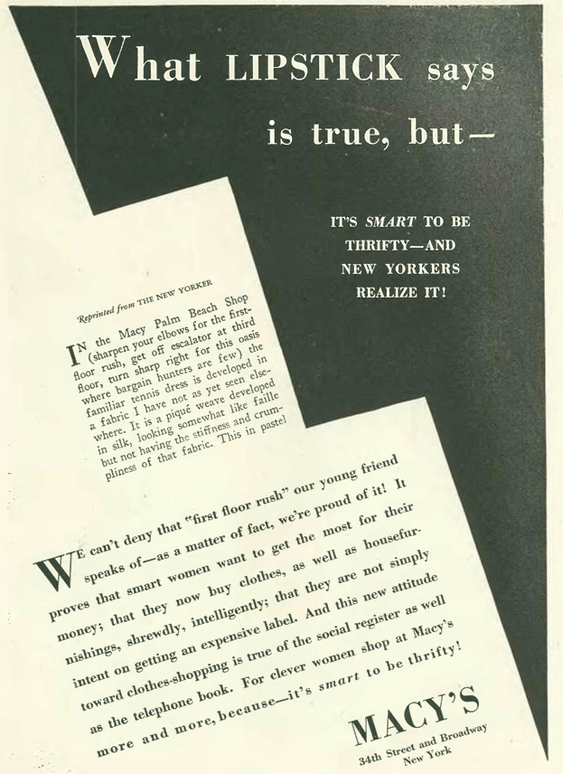In the same issue this ad from Macy’s appealed to participants of a famous cultural event for the posh set—the annual Easter Parade on Fifth Avenue. A tradition dating back to the 1870s, in its first decades the “parade” was a display of wealth and beauty, as the well-to-do strolled from church to church to check out various floral displays.