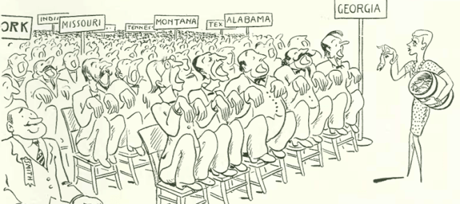 In the March 31, 1928 issue of the New Yorker writer Frank Sullivan and cartoonist Al Frueh took particular delight in skewering the party nominating conventions. As Sullivan observed: