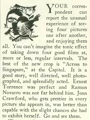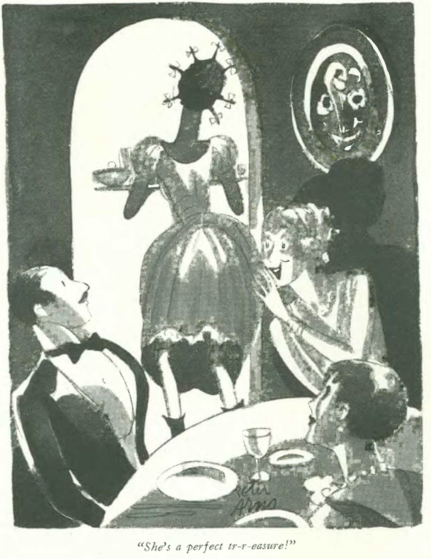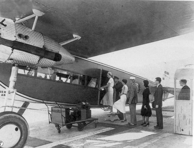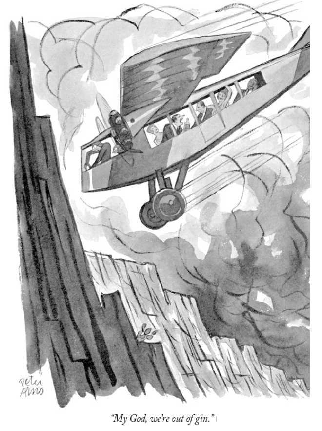 Jumping ahead a couple of years, New Yorker cartoonist Peter Arno offered this view of passenger flight (in a Fokker F-10), the passengers in this case a bunch of silly toffs (April 12, 1930).