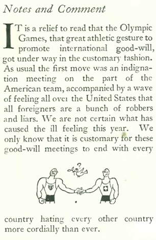 “The Talk of the Town” cast a jaded eye toward the Ninth Olympic Games in Amsterdam: