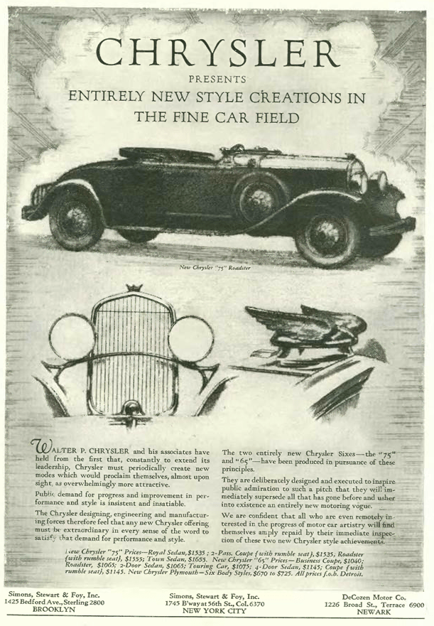 The magazine’s “Motors” column touted Chrysler’s new “peaked” radiators, which no doubt caused many insecure Chrysler owners to consider junking their non-peaked models of yesteryear: