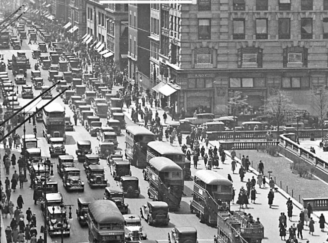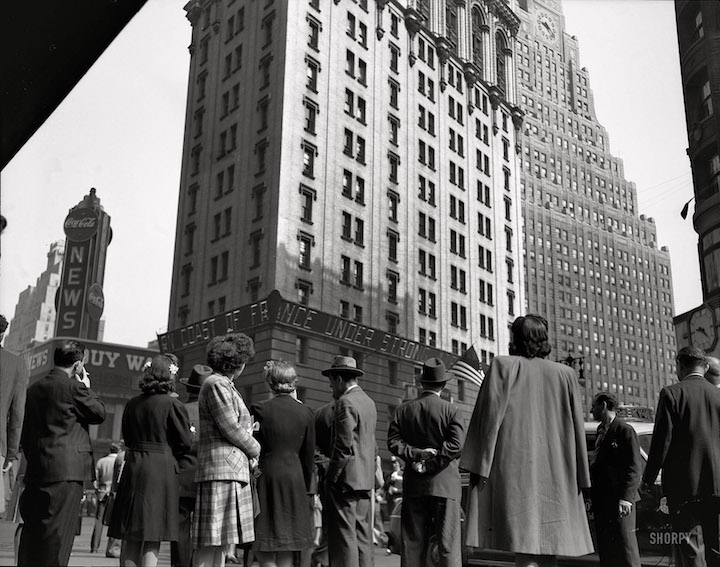 The news ticker, known as the “zipper” (which inspired the news crawl at the bottom of today’s cable news channels), made Times Square the place to be when big events were announced. According to Wired magazine, the zipper, invented by Frank C. Reilly, “was the technological marvel of its day, extending 380 feet around the Times Tower and, with a band 5-feet tall, the moving letters were visible from a distance of several city blocks.” Wired cites a 2005 New York Times column to describe how it worked: