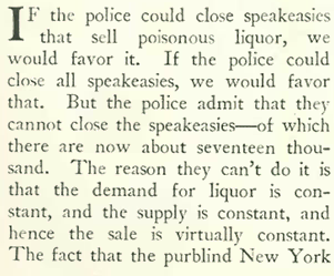 The Jan. 12 “Talk of the Town” addressed the sheer folly of Prohibition enforcement: