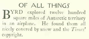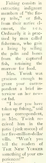 Michaud writes that Woollcott used the column “to opine on, lampoon, and attack the culture and society of the day. In his distinct and at times excessive style, he reviewed books, wrote spoofs, distributed gossip, and generally rankled as many people as he could.” Woollcott ended the column in December 1934, but it was revived in 1992 as a regular venue for many notable humorists, and continues to this day.