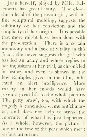 Not only did the New Yorker find Pickford’s performance less than plausible, but the storyline itself seemed a bit fanciful. As for the “Southern drawl” used in the dialogue, the magazine found it “almost unintelligible to Manhattan ears…”