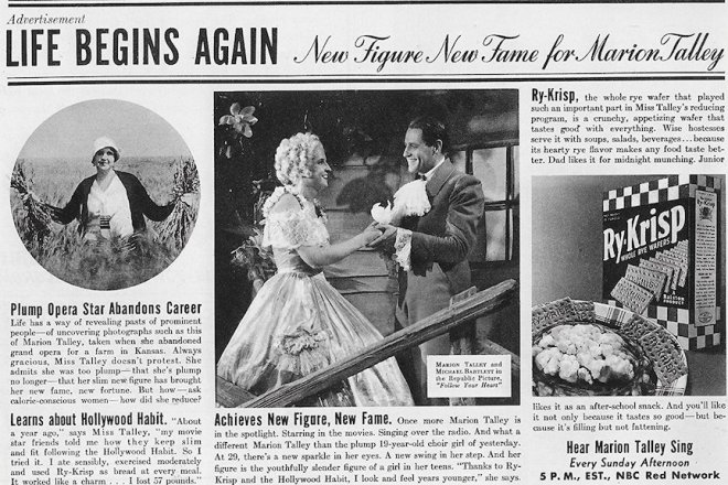 When Talley’s Met contract was not renewed for the 1929 season, she announced her plans to retire to a wheat farm in Kansas (hence the hog calling reference). She did, however, try to revive her career on concert tours and then on her own NBC Radio program (1936-1938), sponsored by Ry-Krisp. She made one film, the 1936 musical Follow Your Heart, but after its tepid reception the 30-year-old Talley decided to retire from show business.