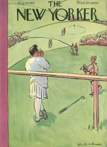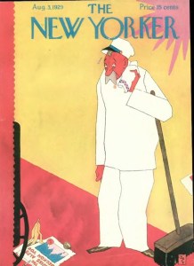 Winding down the last summer of the 1920s — an unusually hot one — one detects subtle changes in The New Yorker’s mood; weary from the decade-long party known as the Roaring Twenties, a bit more mature, and more confident in its voice thanks to the regular writings of James Thurber, E.B. White and Lois Long and copious cartoons and illustrations by such notables as Peter Arno, Barbara Shermund and Helen Hokinson that gave the magazine a distinctively modern feel as it headed into the 1930s.