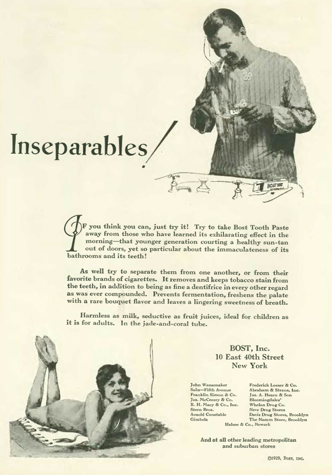 ,,,back on the ground, the makers of Most toothpaste reminded readers to brush those tobacco stains off their teeth, apparently even while they’re smoking…