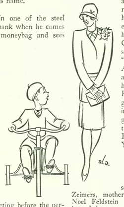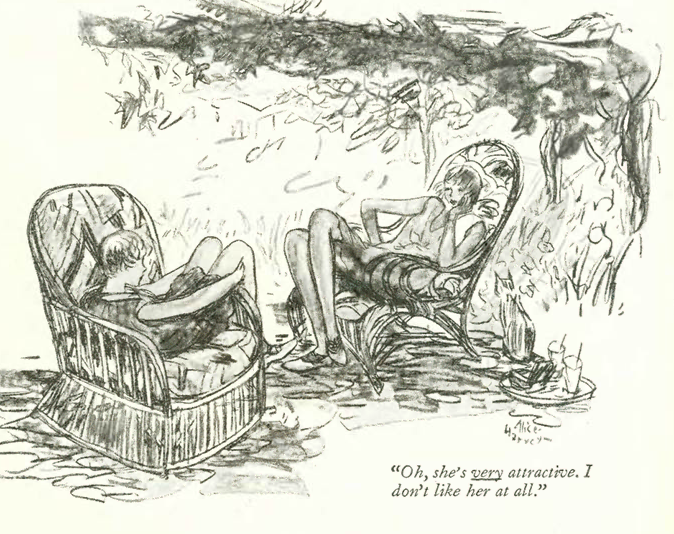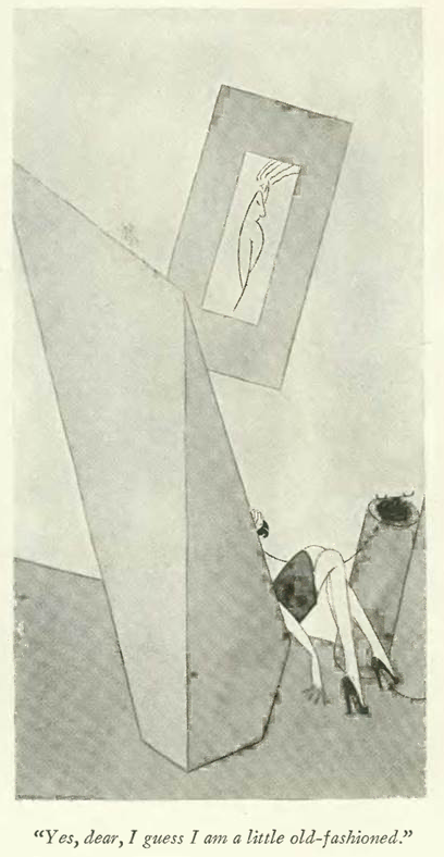 …our illustrations include Abe Birnbaum’s contribution to the casuals section (breaking up the copy of one of Josie Turner’s Elsie Dinsmore parodies)…