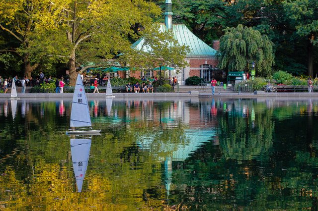 STILL SAILING…The copper-roofed Kerbs Boathouse replaced a wooden structure in 1954. Conservatory Lake served as the setting for a model boat race in E.B. White’sStuart Little. (centralparknyc.org)