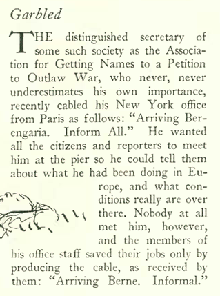 Other items in “The Talk of Town” included this brief anecdote, which I doubt many would find humorous today: