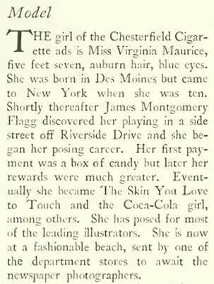 Charles Edward Chambers was an American illustrator probably best known for his Chesterfield ads, although he also illustrated stories for a number of popular magazines from the early 1900s until his death in 1941. The Aug. 10 “Talk of the Town” looked in on his work with model Virginia Maurice: