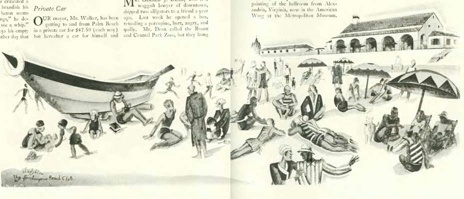 This week’s featured illustration is by Constantin Alajalov, who depicted a summer scene from the Southampton Beach Club…click to enlarge…