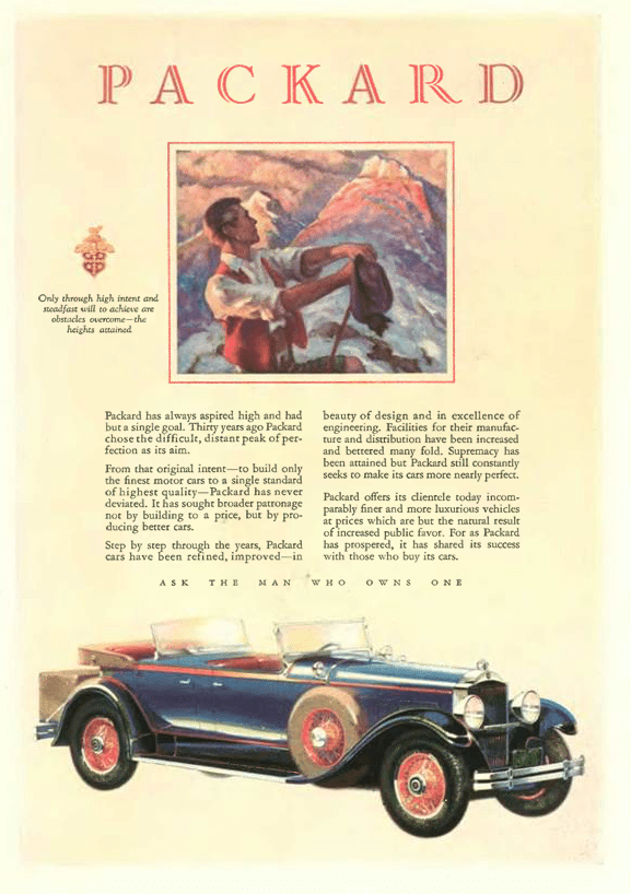 …if you were one of the fortunate few to own a Ruxton, you might take it for a spin on the Lincoln Highway…or maybe not. Despite the appearance of this ad, a fully paved, transcontinental highway was still an incomplete dream in 1929. Although sections of the road were quite smooth from New York to Omaha, further west things could get a bit bumpy, especially on the unpaved stretches. However, as the ad claims, what really made the road viable was the availability of regularly spaced gas stations along the way…