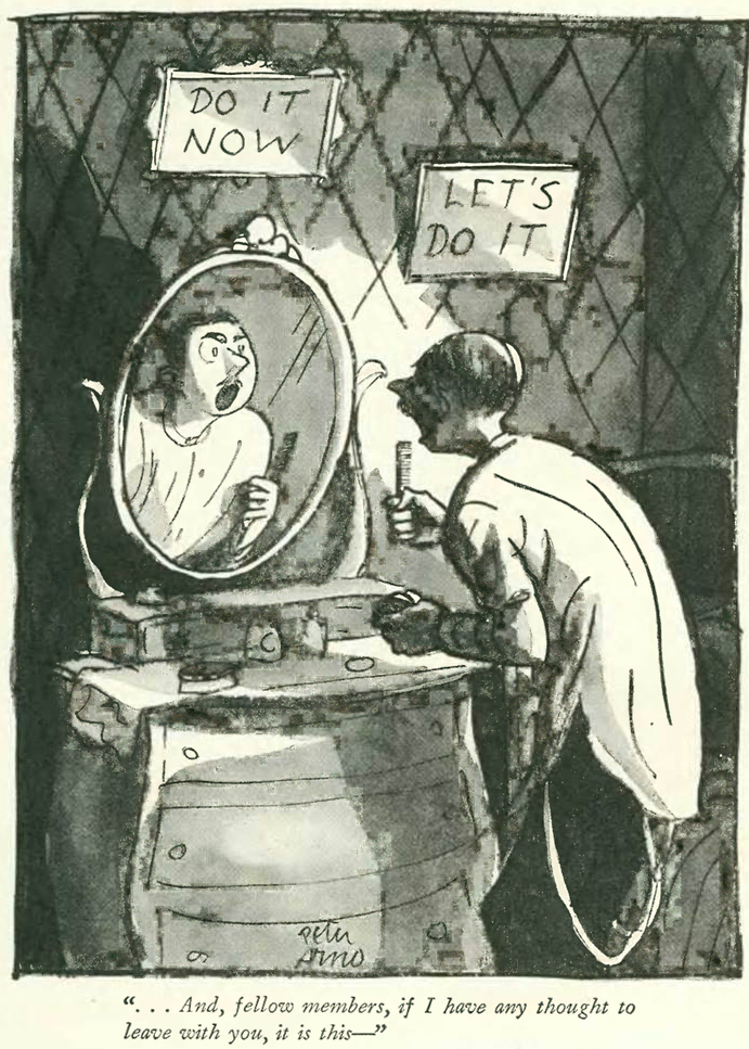 …cartoons for the Aug. 17 issue included a peek behind the scenes at a motivational speaker courtesy Peter Arno…