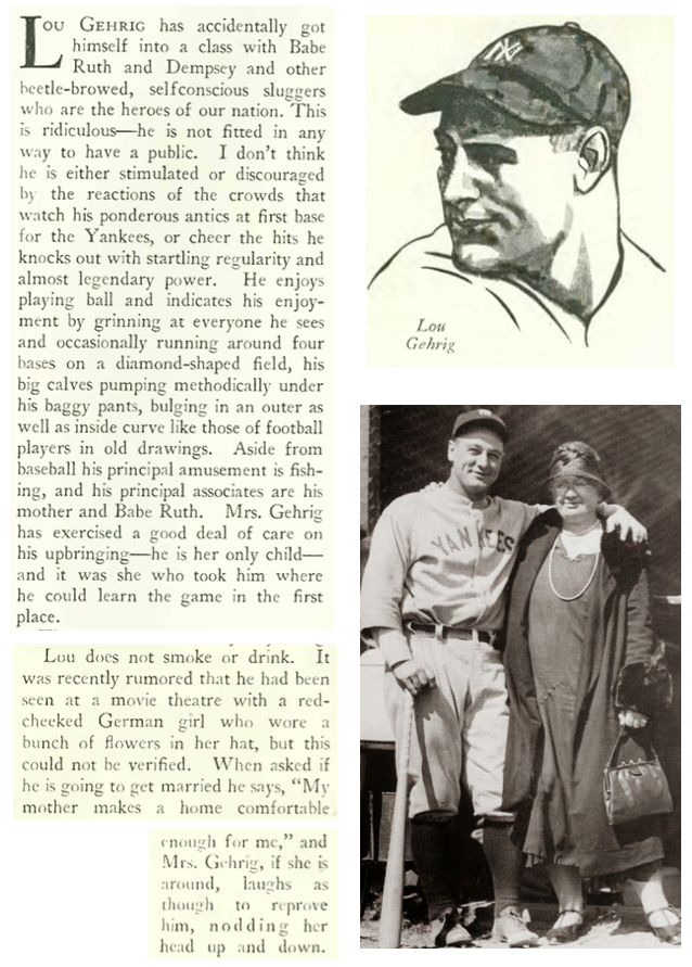 Lou Gehrig rivaled Babe Ruth as a top Murderer’s Row slugger for the 1929 Yankees, yet he couldn’t be more opposite in his lifestyle. A teetotaler and nonsmoker, Gehrig was completely devoted to mom (pictured below in 1927). Niven Busch Jr. submitted this profile of Gehrig for the Aug. 10 issue. Excerpts: