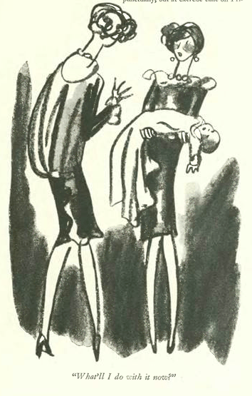 …and commented on his life as a new father…the woman holding the baby was doubtless inspired by his wife, New Yorker columnist Lois Long…